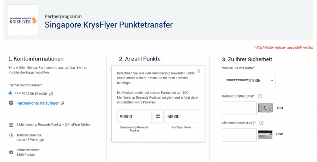 Je nachdem, ob Ihr schon einmal Punkte zu einem Programm transferiert habt, müsst Ihr noch eine Verknüpfung zwischen den Konten herstellen und entsprechend Eure Nummer im jeweiligen Programm parat haben: