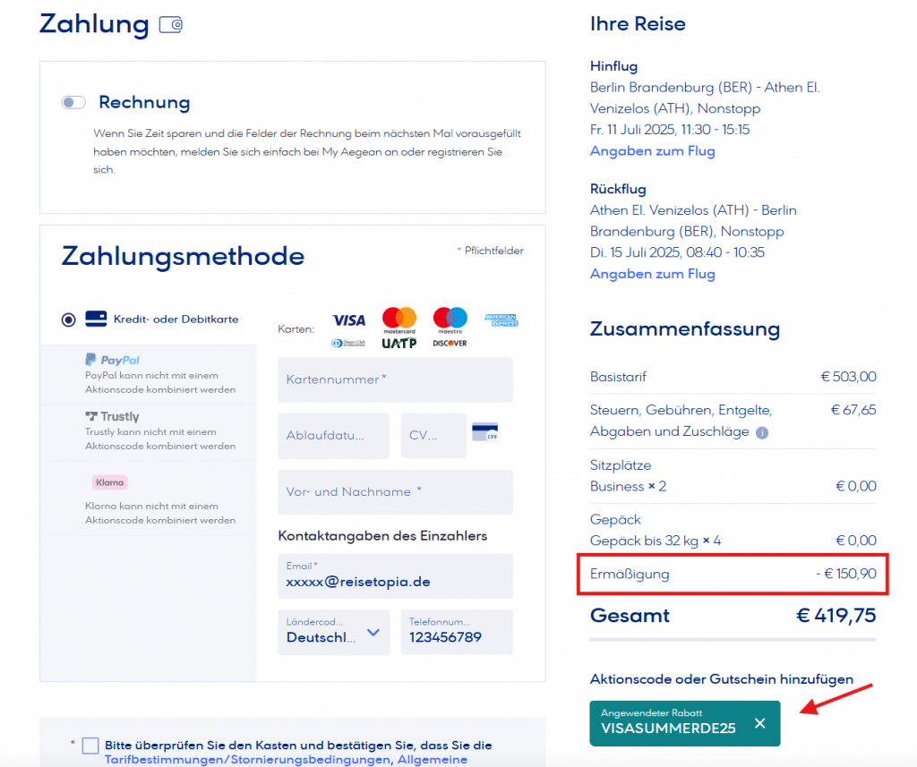 Die griechische Fluggesellschaft Aegean Airlines hält wieder eine spannende Aktion bereit. Bis zum 6. November 2025 könnt Ihr ganze 25 Prozent auf alle Prämienflüge innerhalb Griechenlands sowie von und nach Griechenland sparen.