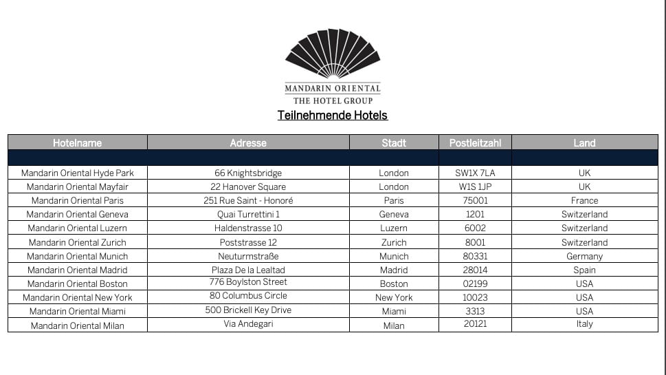 100 Euro Gutschrift bei Mandarin Oriental – die Bedingungen