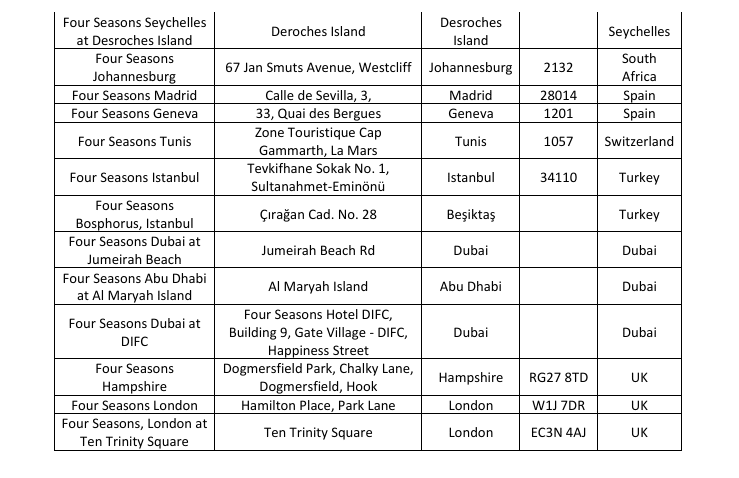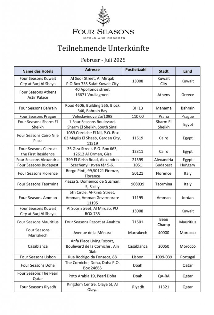 Teilnehmende Four Seasons Hotels