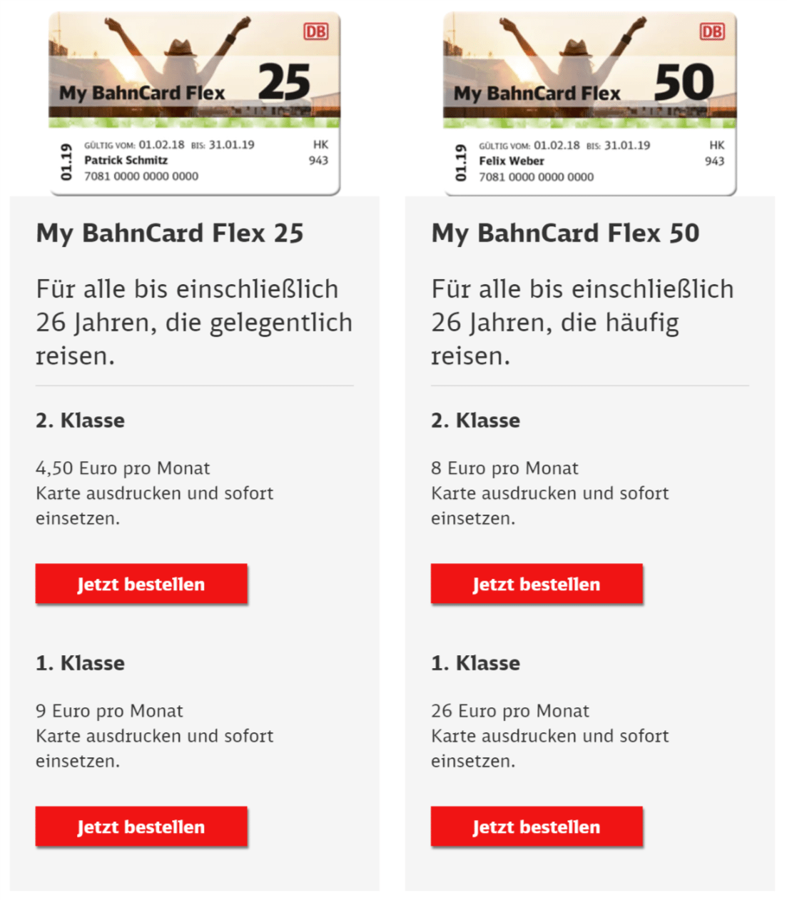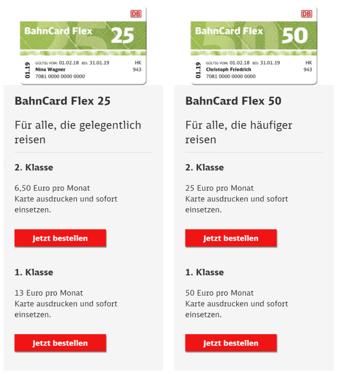 - Produkte: BahnCard Flex 25/50 und My BahnCard Flex 25/50, auch 1. Klasse