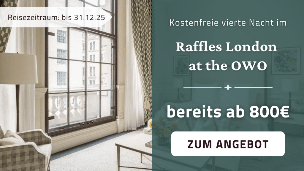 Ein besonderes Raffles-Highlight ist die „The Butler Did It“-Kampagne, mit der Raffles den legendären Butler-Service zelebriert – eine der exklusivsten Signature-Leistungen der Marke. In dieser Aktion stehen maßgeschneiderte Erlebnisse und der diskrete, rund-um-die-Uhr verfügbare persönliche Butler im Mittelpunkt, der jedem Aufenthalt eine ganz besondere Note verleiht. Ob das Koffer-Auspacken beim Check-in, die Organisation eines romantischen Dinners am Strand oder die perfekte Überraschung zum Jubiläum: Mit unseren aktuellen Raffles Angeboten könnt Ihr garantiert immer profitieren.