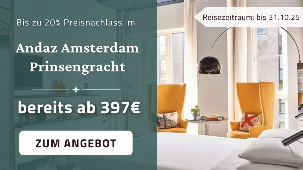 Im Herzen des charmanten Stadtkerns Amsterdams empfängt Euch mit dem Andaz Amsterdam Prinsengracht ein modernes Luxushotel. Wie der Name bereits verrät, liegt die exklusive Unterkunft direkt an der bekannten Prinsengracht und bietet die perfekte Ausgangslage, um die Stadt zu erkunden. Früher hausierte hier in dem Gebäude die Stadtbibliothek. Nun empfängt Euch das Hyatt-Designerhotel und ist insbesondere bei Kunst- und Designliebhabern eine der ersten Adressen der Stadt. Die aufwendige und künstlerische Gestaltung aller Räumlichkeiten hebt das Hotel dabei von den umliegenden Unterkünften ab. Ein weiteres Highlight ist sicherlich auch der kleine Gartenabschnitt hinter dem Luxushotel. Der sogenannte Secret Garden ist die perfekte Ruheoase.