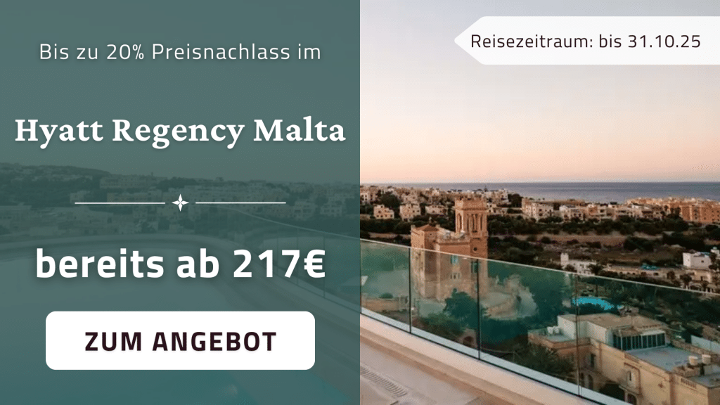 Ob für eine Städtereise, einen entspannten Strandurlaub oder einen geschäftlichen Aufenthalt: Hyatt Hotels kombinieren seit ihrer Gründung 1957 Eleganz mit lokalem Flair. Mit unseren heutigen Dealstag-Angeboten könnt Ihr Eure Buchung noch bis zum 9. Juni 2025 und Aufenthalten bis zum 31. Oktober 2025 mit 20 Prozent Preisnachlass tätigen und in die schönsten Metropolen Europas, wie nach Malta, Ibiza, London, Amsterdam oder Wien reisen.