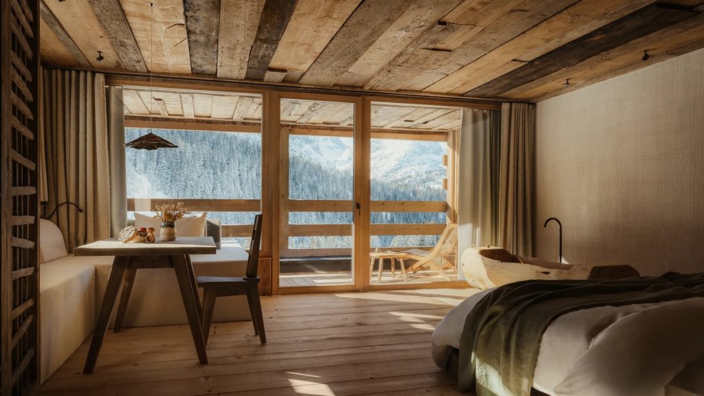 Trotz eines starken Fokus auf Nachhaltigkeit müssen Gäste auf keinen Luxus verzichten und dürfen sich auch in jedem Zimmer auf einen Außenbereich freuen. Neben der Übernachtung und diversen Annehmlichkeiten auf dem Zimmer können Gäste auch von einem kostenfreien Angebot an Aktivitäten profitieren und sich direkt zur Skipiste bringen lassen. Wanderungen sind ebenfalls direkt vom Hotel aus möglich. Alternativ kann man natürlich auch im Spa mit verschiedenen Pools, Ruhebereichen und Saunen entspannen.