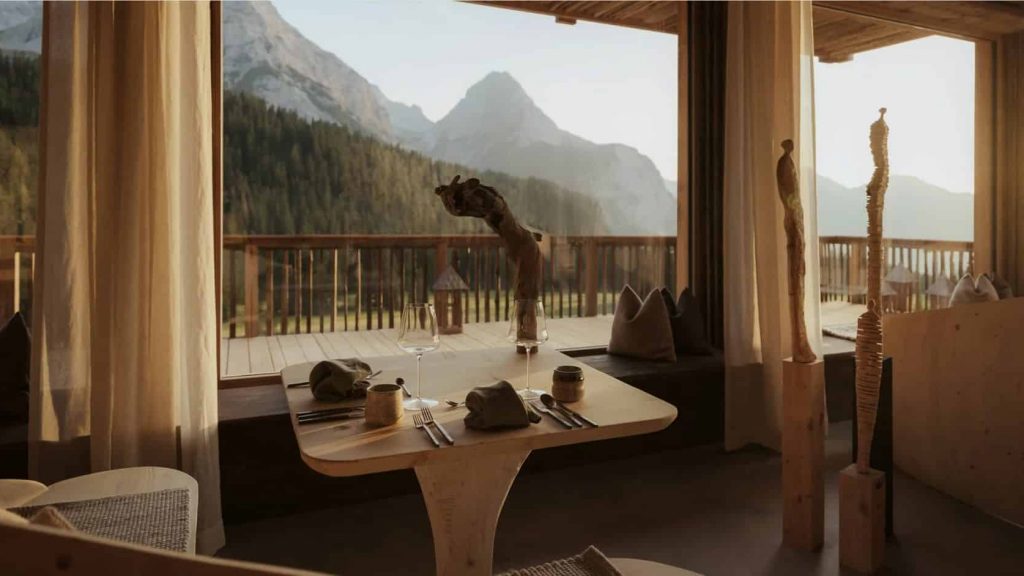 Dass der eriro Deal so besonders ist, liegt insbesondere an dem, was das Hotel ausmacht. Das Boutique Resort hat gerade einmal neun Suiten, die in einer Art luxuriösen Almhütte auf 1.550 Metern zu finden sind. Eingebettet in die Natur liegt das Hotel so abgelegen, dass eine Anreise nur per Gondel möglich ist. Von der Talstation der Ehrwalder Almbahn geht es mit der Gondel auf den Berg und von dort je nach Saison mit einem Caddie oder einem Schneemobil weiter zum Hotel. Dort angekommen erwarten luxuriöse Suiten, die selbst im Falle des “Standardzimmers” mindestens 60 Quadratmeter groß sind.