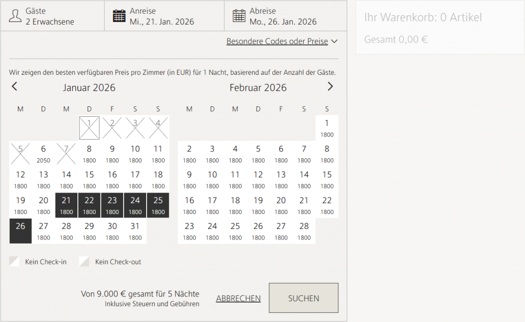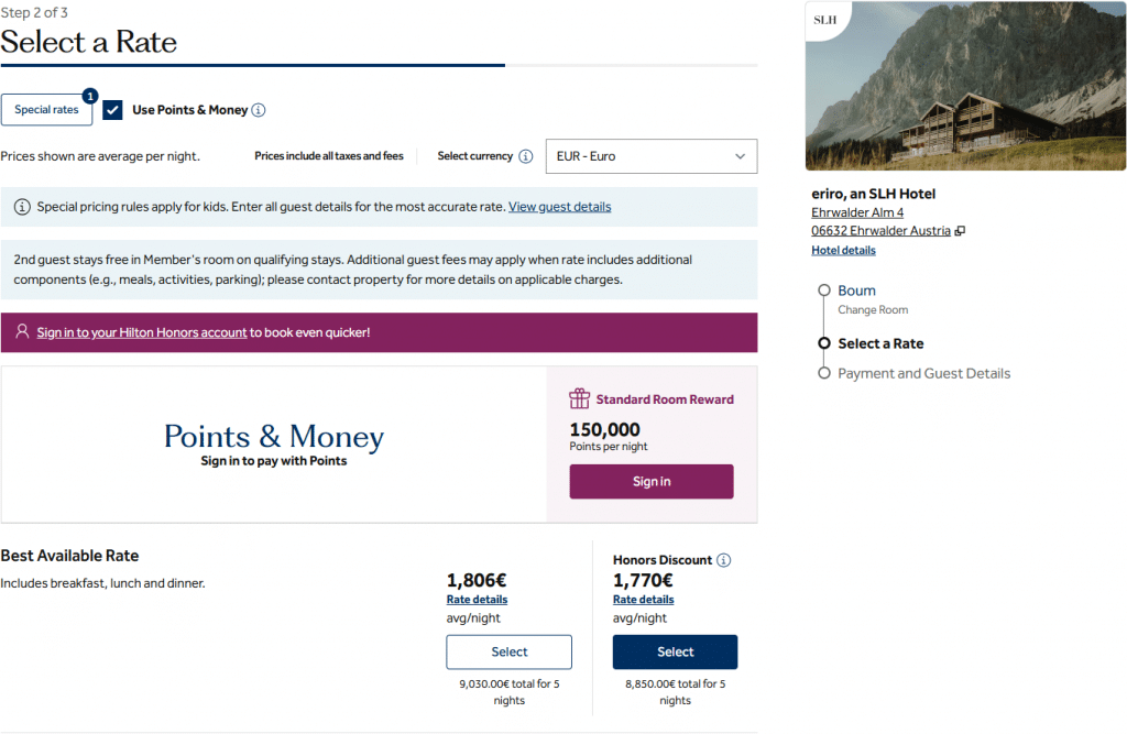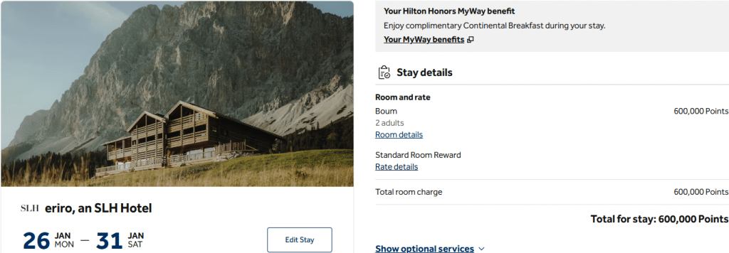 Besonders beeindruckend ist am eriro Deal bei der Buchung mit Hilton Honors Punkten, dass die Verfügbarkeiten im Grunde perfekt sind. Während es bei den besonders attraktiven Einlösungen von Punkten oft schwierig ist, passende Verfügbarkeiten zu finden (etwa in den Resorts auf den Malediven oder auf Bora Bora), findet man im eriro nahezu an jedem Tag Verfügbarkeiten mit Punkten. Das gilt selbst für die absolute Hochsaison im Hochsommer sowie die besonders beliebten Zeiten zum Skifahren im Januar oder Februar.