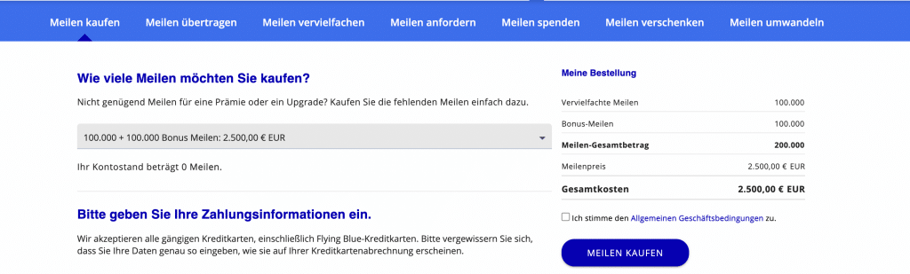 Flying Blue Meilen kaufen