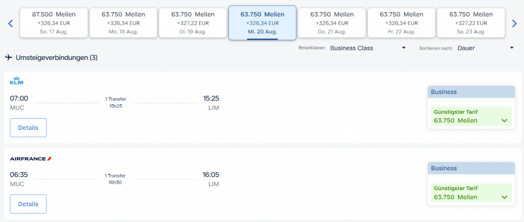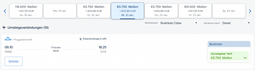 Im Dezember kommen zwar wieder 25 Prozent an Ermäßigung zur Anwendung, doch es sind einige Ziele in der Business Class dabei – gleich mehrere auf der Langstrecke. Flüge innerhalb Europas sind wiederum weniger lukrativ, da zusätzlich auch noch Steuern und Gebühren fällig werden. Dementsprechend solltet Ihr immer genau schauen, ob sich eine Einlösung lohnt.