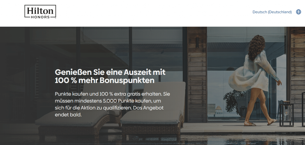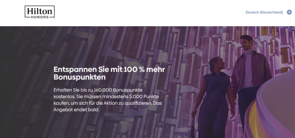 Teilweise kann es vorkommen, dass die Aktion zum Kauf von Hilton Honors Punkten mit Bonus personalisiert ist, sodass es sein kann, dass Euch nicht das gleiche Angebot angezeigt wird. Ansonsten ist zu beachten, dass es den Bonus von 100 Prozent bei der aktuellen Aktion nur dann gibt, wenn Ihr mindestens 5.000 Punkte kauft.