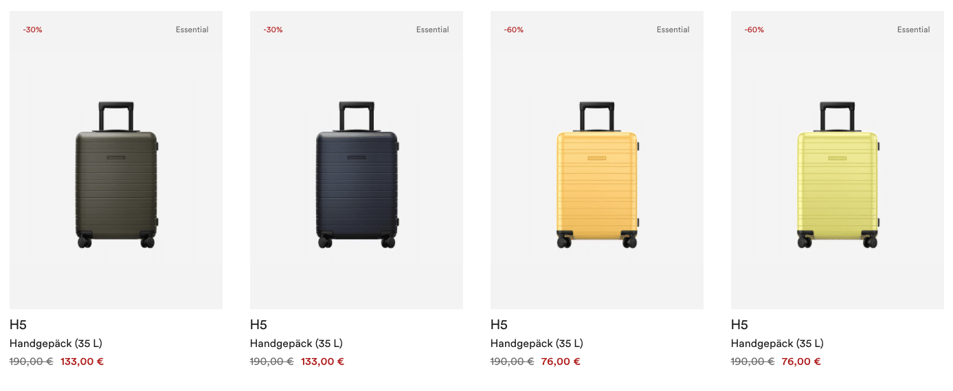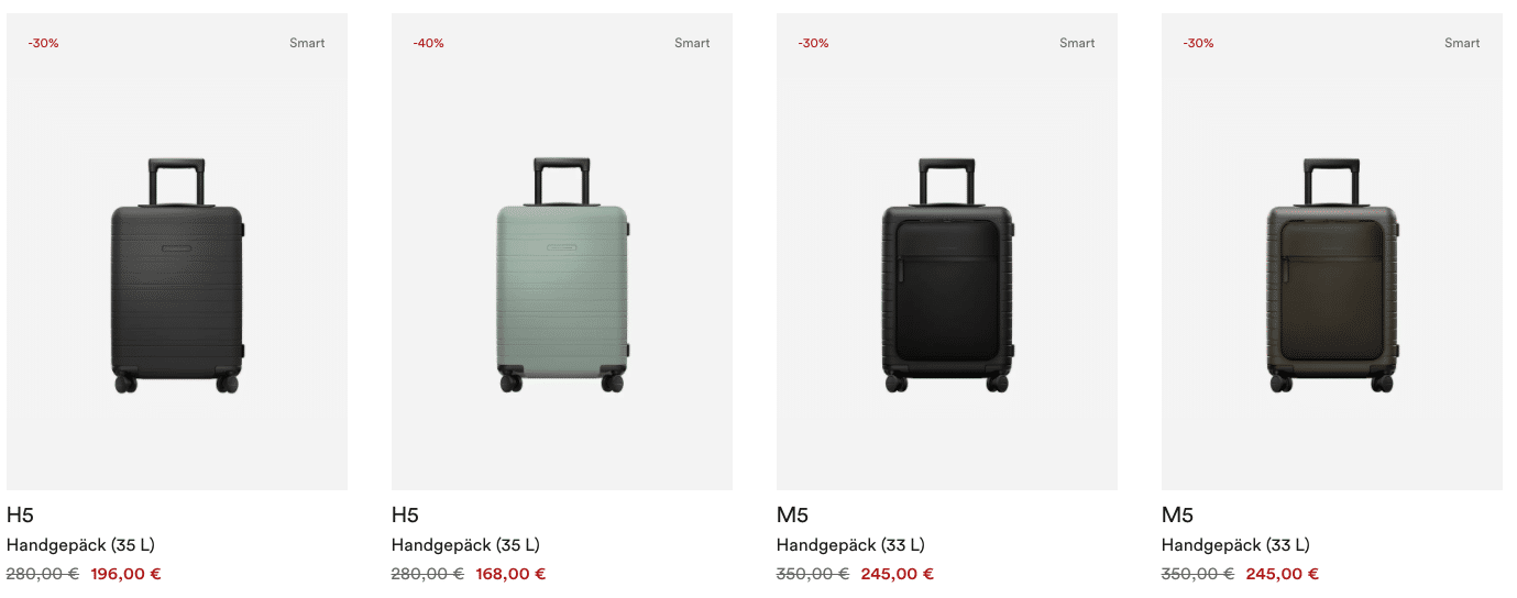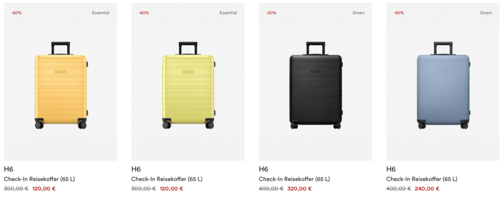 Natürlich könnt Ihr Euch auch für große Check-in Reisekoffer entscheiden, dabei erhaltet Ihr den H6 Koffer bereits ab 318 Euro in der Smart Variante. Beachtet aber, dass hier “nur” 25 Prozent Preisnachlass gewährt werden.