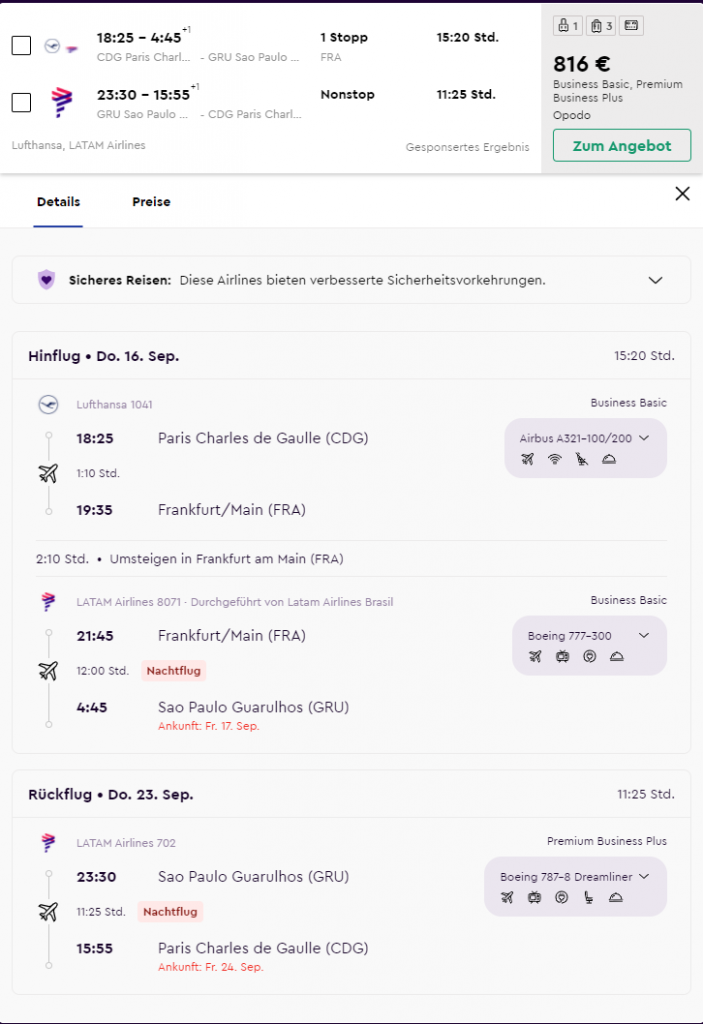 LATAM Business Class Flüge von Barcelona nach Südamerika – Planung