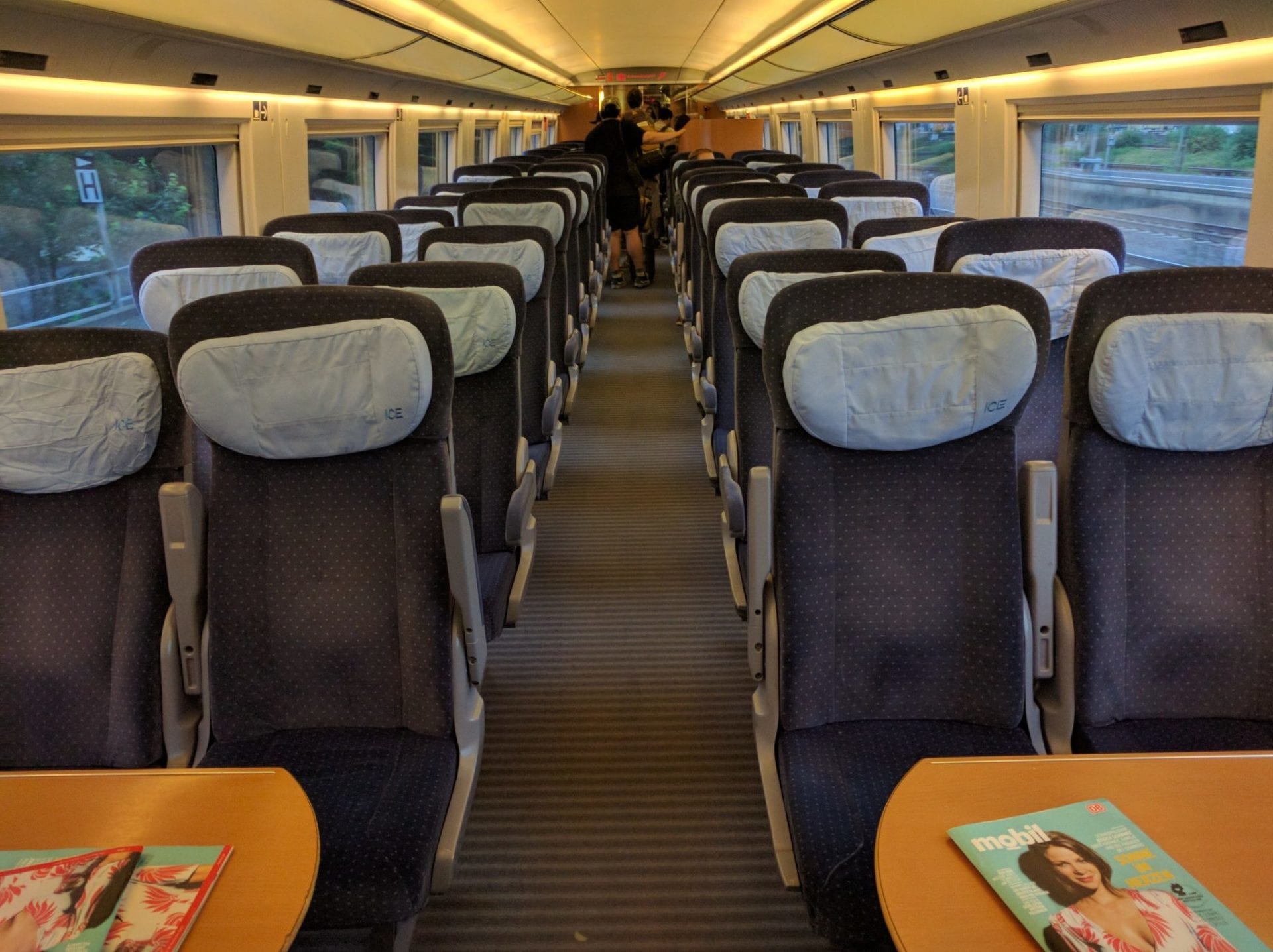 Fast jeder sollte schon einmal im Fernverkehr mit der Deutschen Bahn unterwegs gewesen sein. Das Flaggschiff der DB, der ICE, bietet auch in der zweiten Klasse komfortable Stoffsitze mit vergleichsweise viel Platz.
