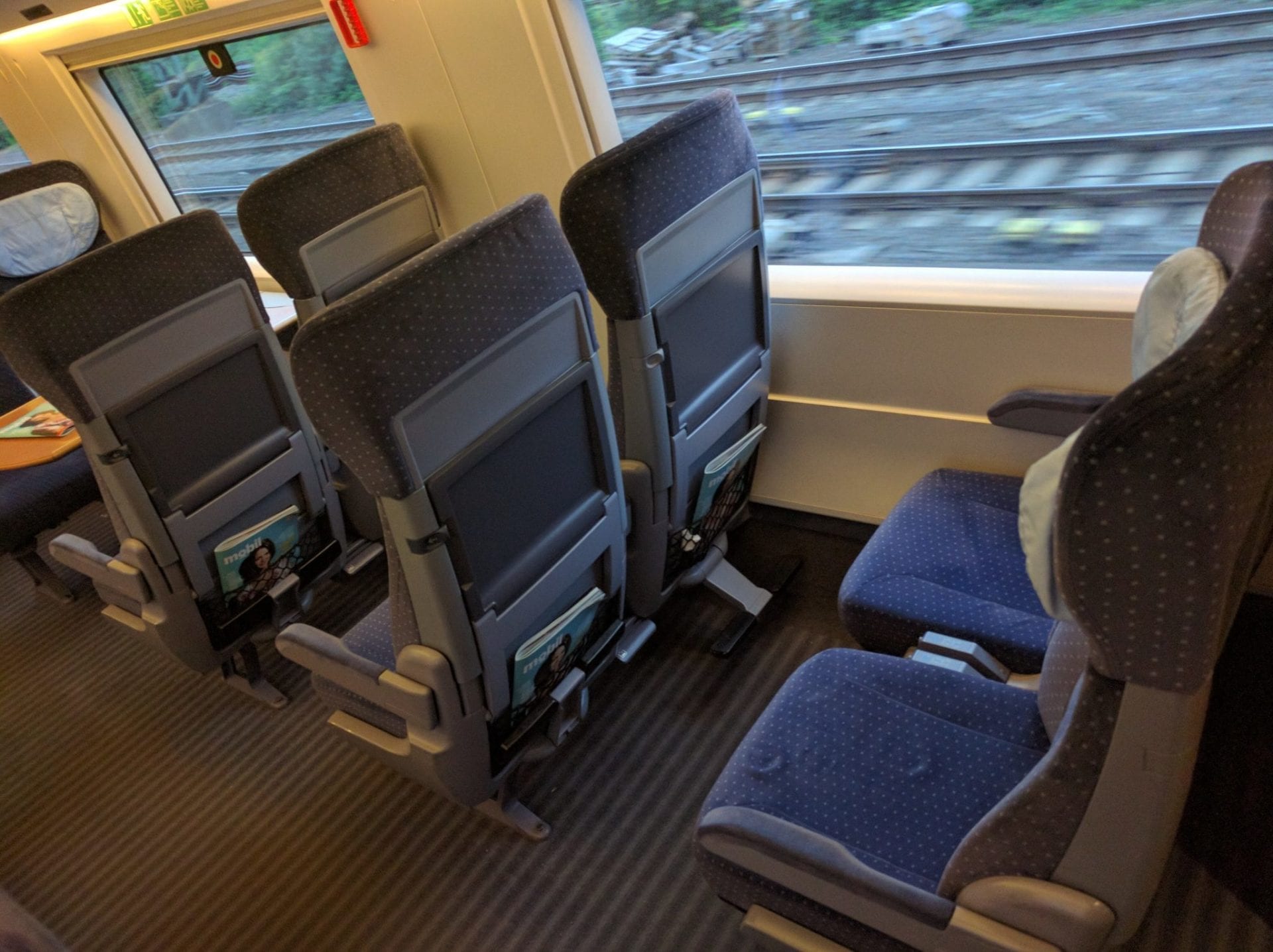 Auch längere Fahrten lassen sich so komfortabel aushalten. Während der Hauptreisezeit würde ich allerdings zu einer kostenpflichtigen Sitzplatzreservierung raten. Das WLAN ist mittlerweile auch in der zweiten Klasse komplett kostenlos für alle Fahrgäste, die Geschwindigkeit lässt zugegebenermaßen aber zeitweise zu Wünschen übrig. Jeder Doppelsitz verfügt zudem über eine Steckdose. Der IC/EC (Inter-/EuroCity) bietet ein etwas geringeres Komfortniveau. Zahlreiche verschiedene Wagengattungen sind dabei in die Züge eingereiht. Abteil- und Großraumwagen verfügen leider nicht flächendeckend über genügend Steckdosen, WLAN ist generell nicht vorhanden.