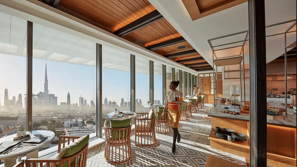 Noch luxuriöser wird es nur in den Suiten, die bis zu 200 Quadratmeter groß sind und mit exklusiven Wohnbereichen, Ankleidezimmern und privatem Butlerservice begeistern. Zusätzlich bietet der Club Lounge Zugang, den Ihr ab sofort bei Buchungen über reisetopia Hotels – unabhängig von der Zimmerkategorie – kostenfrei erhaltet, einen gesonderten Service und ganztägige Speisen und Getränke. Die geräumige Lounge verfügt über eine offene Küche, eine Veranda sowie private Essbereiche mit raumhohen Fenstern, die einen tollen Blick auf die Skyline von Dubai bieten. Genießt hier ebenfalls Frühstück von 8 bis 12 Uhr, einen Nachmittagstee von 14:30 bis 16 Uhr und eine Cocktail-Happy-Hour zwischen 17 und 19 Uhr.