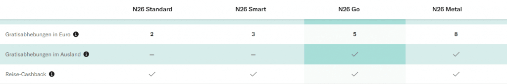Gleichzeitig muss man allerdings bedenken, dass die N26 Aktion nur für die Premium-Konten N26 Go (9,90 Euro monatlich) und N26 Metal (16,90 Euro monatlich) gilt). Eine Darstellung auf der N26 Vergleichsseite, die den Vorteil auch für das kostenlose N26 Girokonto zeigt, ist fehlerhaft:
