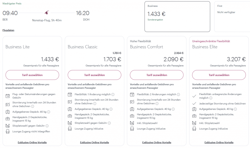 Den Qatar Airways Rabatt gilt – wie schon erwähnt – nur auf den reinen Flugpreis vor Steuern und Gebühren, bis zu 10 Prozent in der Business Class. Der effektive Rabatt kann sich je nach Buchung unterscheiden. Der Rabatt wird direkt bei der Suche nach Flügen auf der Qatar Airways Webseite als “Sonderangebot” angezeigt.