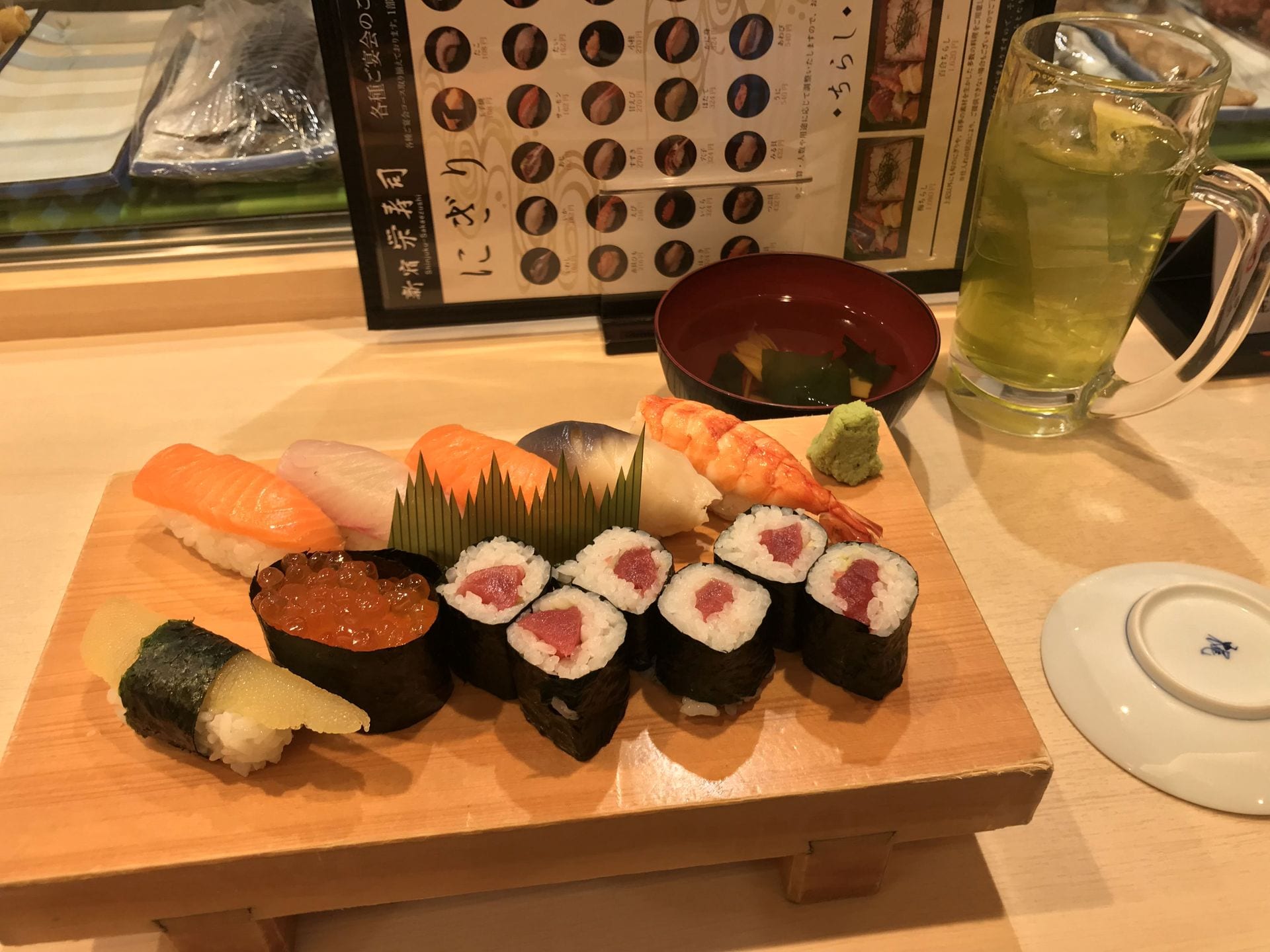 Was das Thema Essen angeht, war ich als Sushi Fan natürlich allen voran auf der Suche nach Nigiri und Maki. In einer typischen Sushi Bar fand ich dann auch genau das, wonach ich gesucht hatte: Eine Theke, an der viele Japaner saßen und ein Sushi Meister die Speisen frisch zubereitete. Geschmacklich natürlich absolut genial, obwohl das Lesen der Karte zugegebenermaßen zu Schwierigkeiten führte.