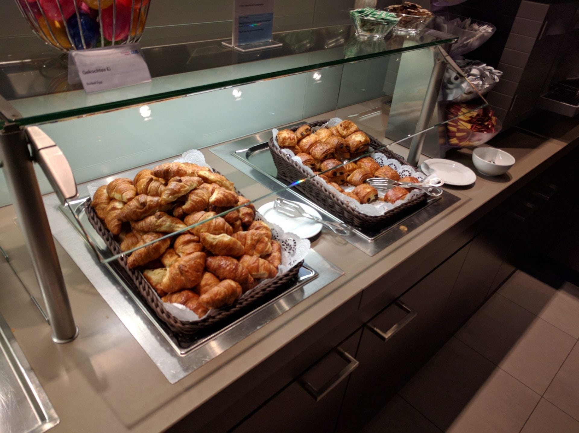 Die Hugo Junkers Lounge befindet sich in der oberen Ebene des Terminal B. Zutritt haben hier Passagiere der verschiedensten Airlines, zusätzlich ist diese Lounge auch Teil der Priority Pass und Diners Club Netzwerke. Wenngleich das Essensangebot morgens in Ordnung ist, so fällt dieses ab Mittag gegenüber der Senator Lounge deutlich ab. Auch die Getränkeauswahl ist etwas eingeschränkter.