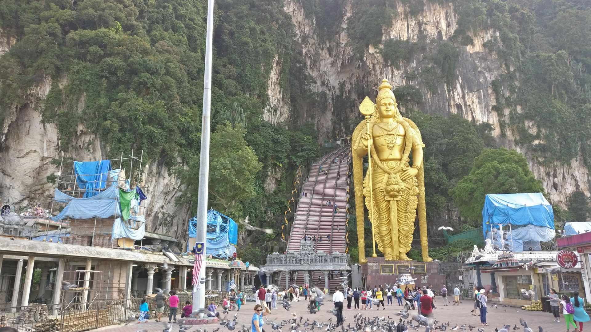 Das letzte wirkliche Highlight der Stadt sind die Batu Caves. Keine halbe Stunde von der Stadt entfernt, findet man hier eine antike Tempelanlage, die sich in einem Berg befindet. Zudem hat man, sobald man die Stufen erklommen hat, eine schöne Aussicht auf die Stadt. Auf dem Weg nach oben sollte man sich nicht von den herumspringenden Affen ablenken lassen, die gerne Bananen und anderes Essen aus der Hand der Touristen herausschnappen.
