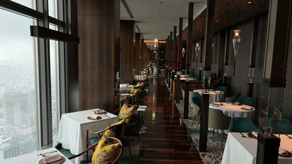Zusätzlich zu Moritz Hotel-Empfehlungen konnten Anna und Verena im Mandarin Oriental Tokio nächtigen. Das Luxushotel befindet sich in einer ruhigeren Lage im Financial District. Zu den Highlights gehört der Blick auf Mount Fuji aus dem Zimmer, das ausgezeichnete Frühstück und das Sense Restaurant. Neben kantonesischer Küche genießt man dank der breiten Fensterfront einen atemberaubenden Blick über die Skyline, wobei einem dieser fast überall zuteil wird, da sich die Rezeption im 38. Stock befindet. Daher können wir auch das Spa empfehlen.