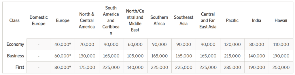 Leider fällt schon beim ersten Blick auf, dass eine besonders günstige Einlösung hier nicht wirklich möglich ist. Das hängt mit der letzten Abwertung für diese Prämienflüge zusammen. Attraktiv sind zumindest teilweise Langstrecken in der Business und First Class, allerdings nur, wenn Ihr mehrere hunderttausend Meilen parat habt. Deshalb würden wir von einer Einlösung für Star Alliance Partner eher abraten, denn Scandinavian Airlines selbst bietet attraktivere Einlösungen für das eigene Streckennetz. Dafür lohnt ein Blick auf den Award Chart für Flüge mit SAS selbst: