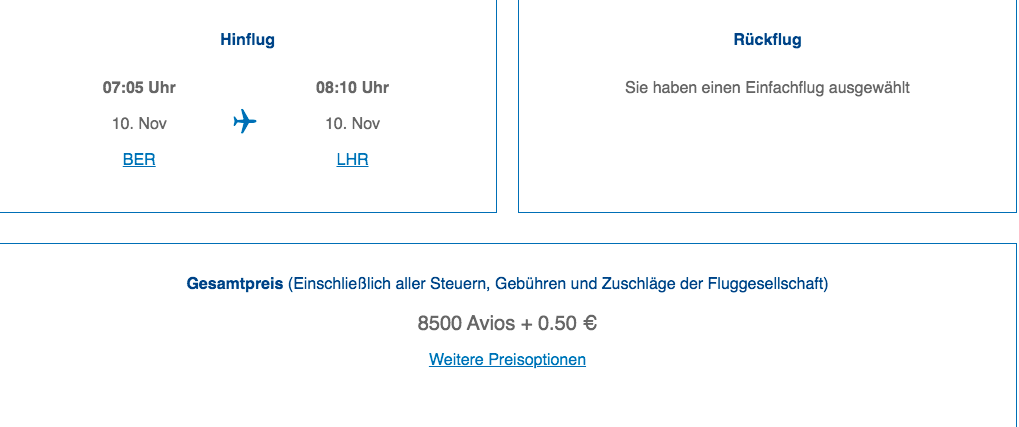 Wenn man die entsprechenden Verfügbarkeiten gefunden hat, dann sind die Preise in der Economy als Meilenticket für Ziele bis 1.000 Meilen innerhalb Europas äußerst attraktiv. Teilweise werden die Segmente jedoch einzeln bepreist, sodass man mit einem Umstieg dann das Doppelte an Meilen zahlt.
