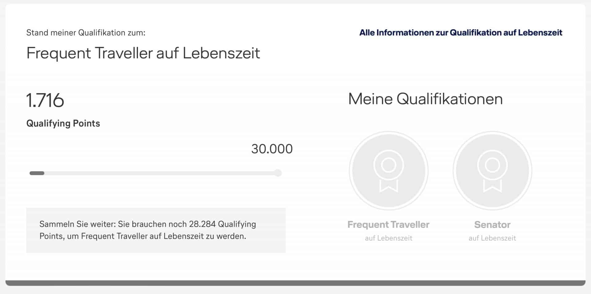 - Lifetime Frequent Traveller: 1.500 in der Economy Class | 750 in der Business Class