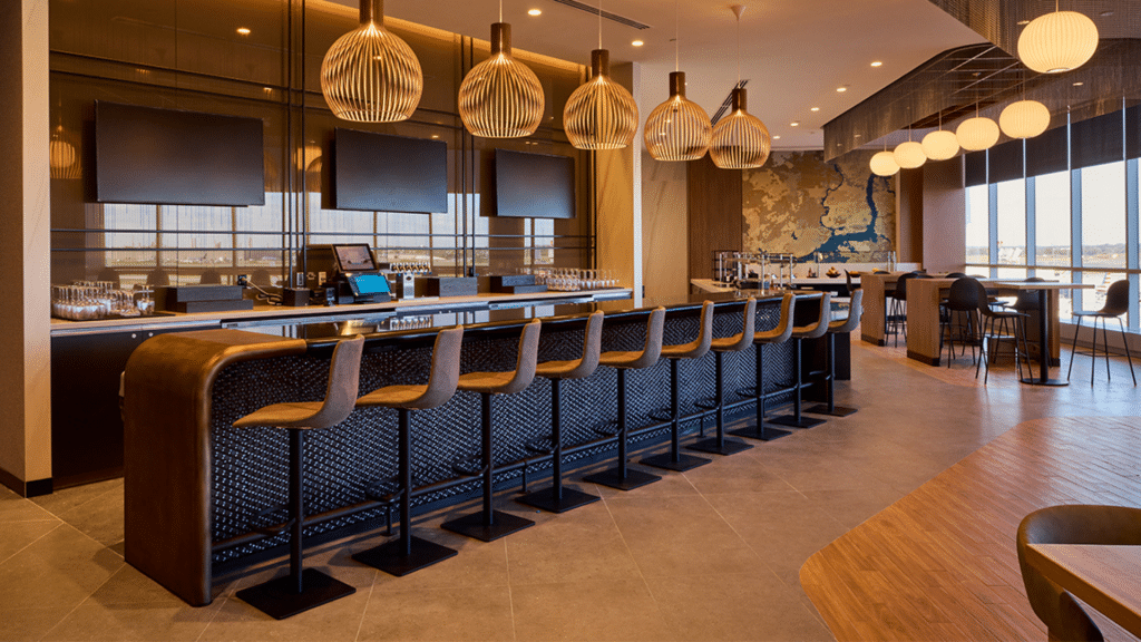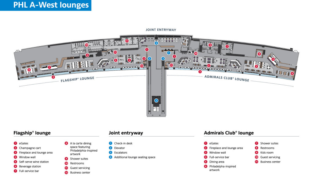 Zugang zu der neuen Flagship- und Admirals Club-Lounge im Terminal A-West zwischen den Gates A15 und A16 erhalten berechtigte AAdvantage-Mitglieder, qualifizierte oneworld-Statusinhaber sowie Reisende in Premium-Kabinen auf qualifizierten Flügen.