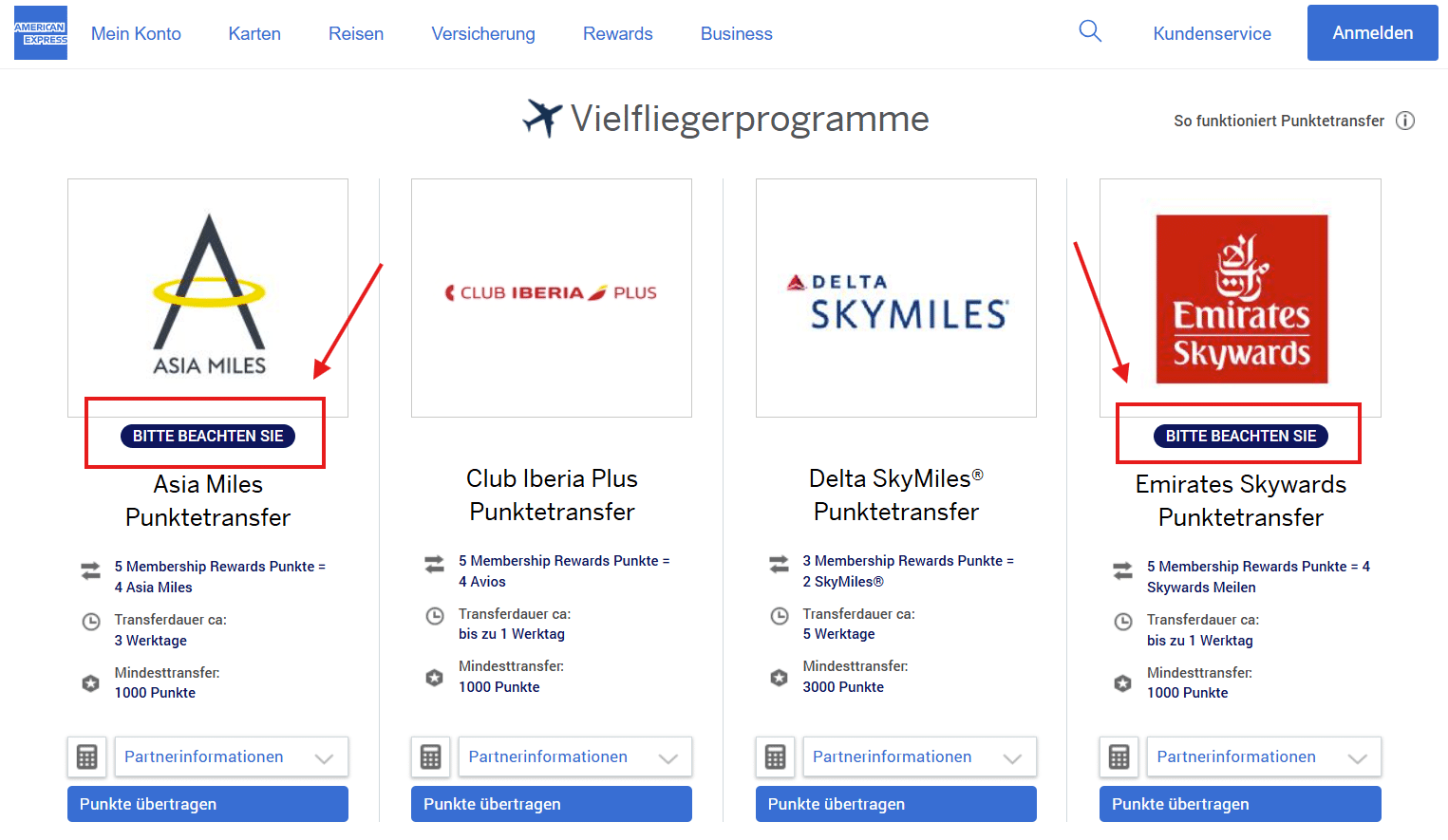- Für einen begrenzten Zeitraum gibt es Einschränkungen beim Transfer von Membership Rewards® Punkten