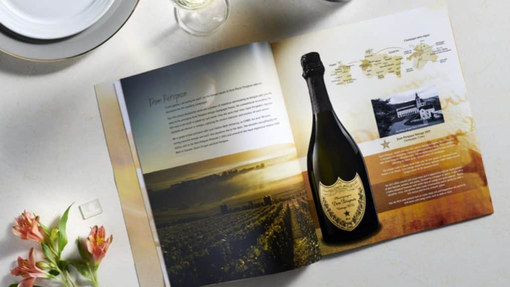 Das Menü erklärt, wie die Weinauswahl bei Emirates getroffen wird und woher die kulinarische Inspiration für die Gerichte stammt, die in der First Class serviert werden. Dabei wird auch auf die Herkunft von seltenen, handverlesenen Flaschen eingegangen und es werden Empfehlungen gegeben, welcher Wein am besten zu welchem Gericht vom Menü passt.