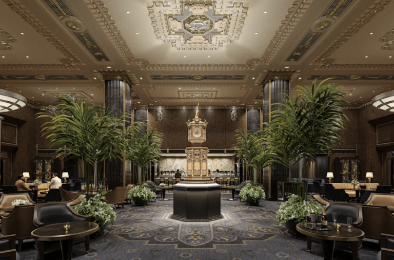Aber auch die öffentlichen Bereiche erhalten eine Auffrischung. Ein zentrales Highlight bleibt die Lobby mit der historischen Uhr aus dem Jahr 1893, die originalgetreu restauriert wurde. Auch die berühmte Peacock Alley erlebt ihre Rückkehr als Lounge-Treff mit Cocktailbar, das stilvoll an die glanzvolle Geschichte des Hauses anknüpft. Darüber hinaus können Hotelgäste sich auf weitere gastronomische Einrichtungen der Extraklasse freuen, wie auf die amerikanische Brasserie Lex Yard. Während im Obergeschoss à la carte und saisonale Gourmetmenüs serviert werden, lockt die Bar im Erdgeschoss mit legerer Speisekarte und Raw Bar-Gerichten. Oder testet feinste japanische Aromen im Yoshoku.