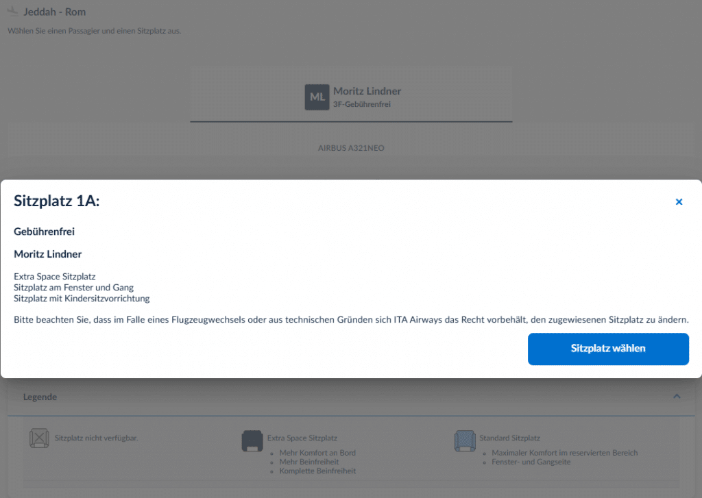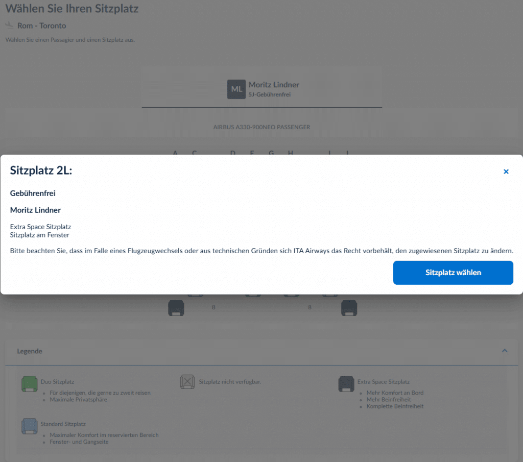 Die Reservierung geht schon online bei ITA – kannst du hier für die zweite Person zufällig kostenlos einen Sitz auswählen? Hatte letzte Woche schon darüber geschrieben, dass aktuell die besten Plätze weiterhin kostenpflichtig sind als SEN, sodass hier scheinbar noch nicht alles 1:1 angeglichen ist…