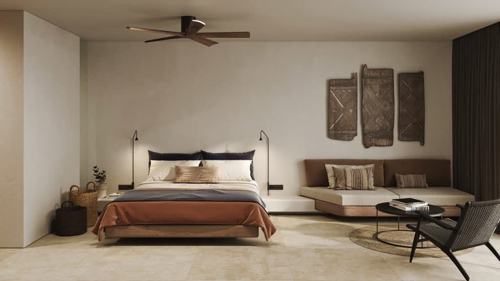 Insgesamt erwarten die Gäste im Magma Resort 59 Gästezimmer, wovon ganze 24 Suiten sind. 46 der Gästezimmer verfügen zudem über private Pools oder Jacuzzis, was den Erholungsfaktor enorm erhöht. Bei der Inneneinrichtung findet man viele Elemente, die unverkennbar für Santorini stehen. So haben sich die Architekten von PEOPLE und ELASTIC Architects vor allem an den Höhlen und der Natur Santorinis inspirieren lassen. Holz, Stein und vulkanische, magmaschwarze Töne wurden mit einer minimalistischen und anspruchsvollen Inneneinrichtung kombiniert.