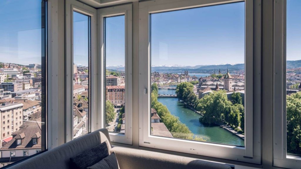 Besonders hervorzuheben sind die großzügigen Fenster, die nicht nur viel Tageslicht hereinlassen, sondern je nach Lage auch einen herrlichen Blick auf die Limmat oder die Zürcher Skyline ermöglichen. Und wer noch mehr Raum und Exklusivität wünscht, findet in den geräumigen Suiten mit separatem Wohnbereich, elegantem Interieur und luxuriösen Bädern ein echtes Zuhause auf Zeit.