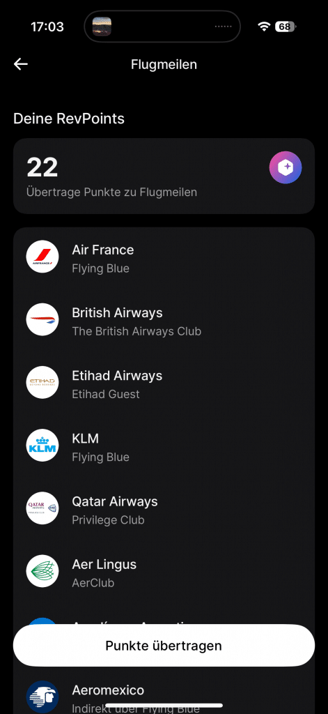 Die gesamte Liste der direkten RevPoints Transferpartner sieht damit nun wie folgt aus: