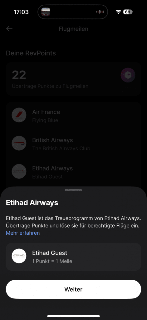 Seit wenigen Monaten ist es möglich, selbst mit der kostenlosen Revolut Mastercard sogenannte RevPoints für Zahlungen zu sammeln. Spätestens seitdem steht die britische Neobank auch in der Welt der Meilen und Punkte stärker im Fokus. Gerade das Revolut Ultra Abonnement ist dabei spannend, sammelt man damit doch einen Punkt je Euro Umsatz. Die Zahl der Transferpartner wächst zudem konstant. Der neueste Zuwachs ist Etihad Airways, wie die Airline in einer Pressemitteilung bekannt gegeben hat und bereits in der Revolut App ersichtlich ist.