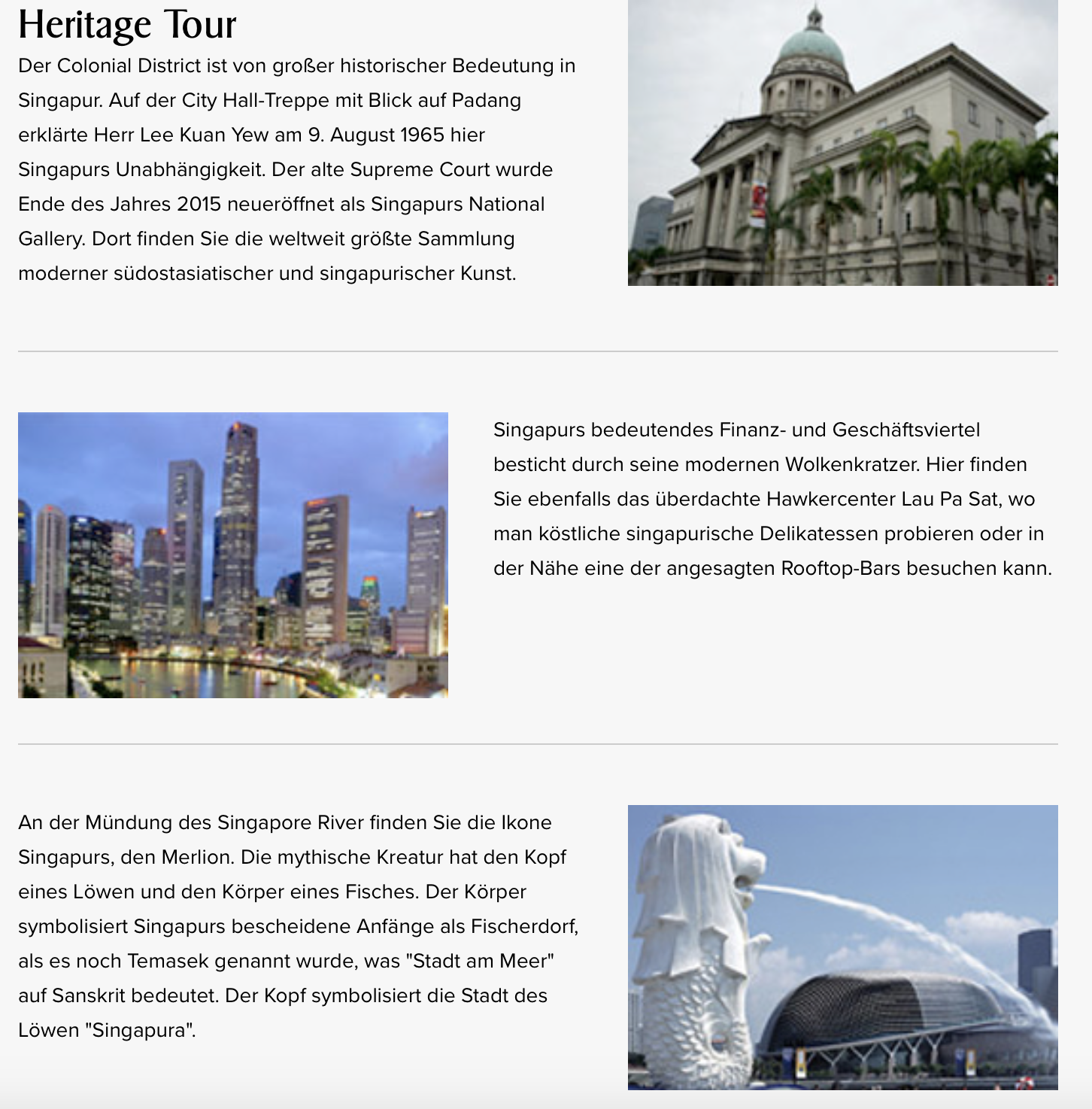 Für alle, die einen längeren Aufenthalt in Singapur haben, bietet Singapore Airlines die geniale Möglichkeit, während Eures Aufenthalts die Stadt zu entdecken. Hierzu werden zwei kostenlose geführte Touren angeboten, die jeweils etwa 2,5 Stunden dauern. Aus diesem Grund ist das Angebot nur für alle Passagiere gültig, die mindestens 5,5 Stunden Aufenthalt in Singapur haben. Länger als 24 Stunden darf Euer Aufenthalt aber nicht sein.