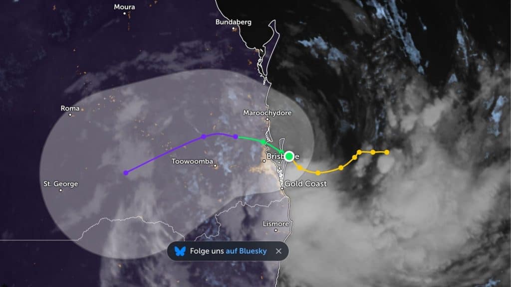 Der tropische Wirbelsturm namens Alfred hat sich bereits angebahnt – nun sorgt er endgültig für Einschränkungen. Während sich der Zyklon weiter auf die Ostküste Australiens zubewegt, sind bereits an vielen Stellen Auswirkungen spürbar. Neun Meter hohe Wellen sind Vorboten des Tropensturms, gefolgt von Stromausfällen und Schließungen von öffentlichen Einrichtungen. Auch der Flugverkehr wird durch den nahenden Zyklon enorm beeinflusst.