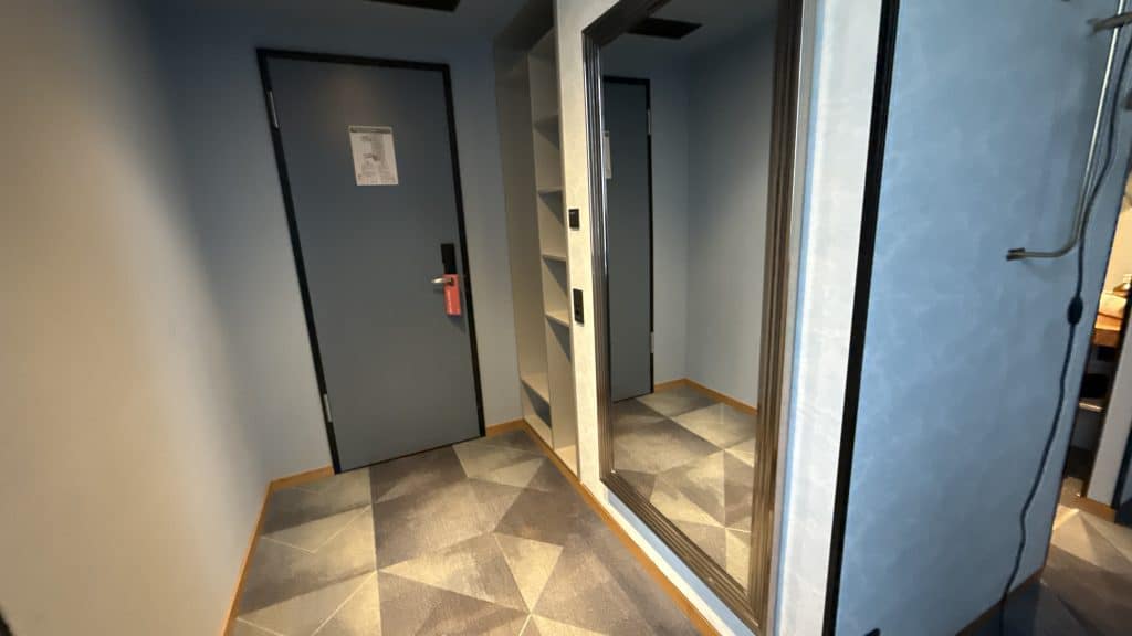 Schön war in diesem Medium Zimmer die Ecklage, sodass das Zimmer mit einem großen Eingangsbereich mit dem offenen Kleiderschrank ein wenig anders geschnitten und etwas besser zum Gang hin isoliert war.