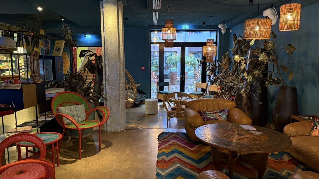 Glücklicherweise ändert sich der Eindruck, wenn man das Hotel betritt, denn dort bekommt man nichts mehr von dem außen herum mit, sondern trifft eher auf eine entspannte Atmosphäre zwischen Bier, Laptops und lauten Gesprächen in der stilvollen Lobby, die eine Art Mix zwischen einem Wohnzimmer und einem Co-Working-Space ist.