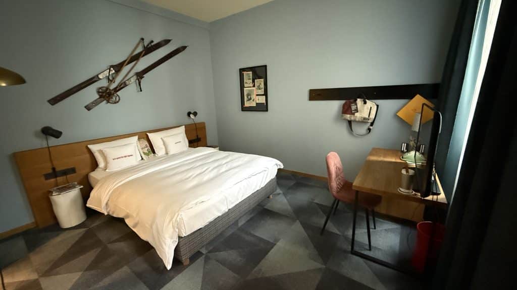 Der Gesamteindruck des Zimmers bei meiner 25hours Hotel Frankfurt The Trip Bewertung war recht solide, denn bei der Buchung war mir bereits klar, dass ich hier weniger Annehmlichkeiten als in anderen Luxushotels vorfinden werde.