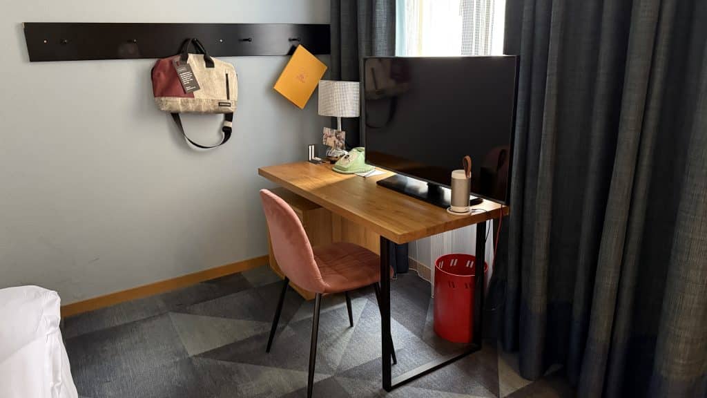 Ansonsten verfügt jedes Zimmer über eine eigene FREITAG-Tasche, die während des Aufenthalts kostenfrei genutzt werden kann. Bei meinem Aufenthalt im Jahr 2025 habe ich allerdings festgestellt, dass die Taschen mittlerweile ziemlich mitgenommen wirken.
