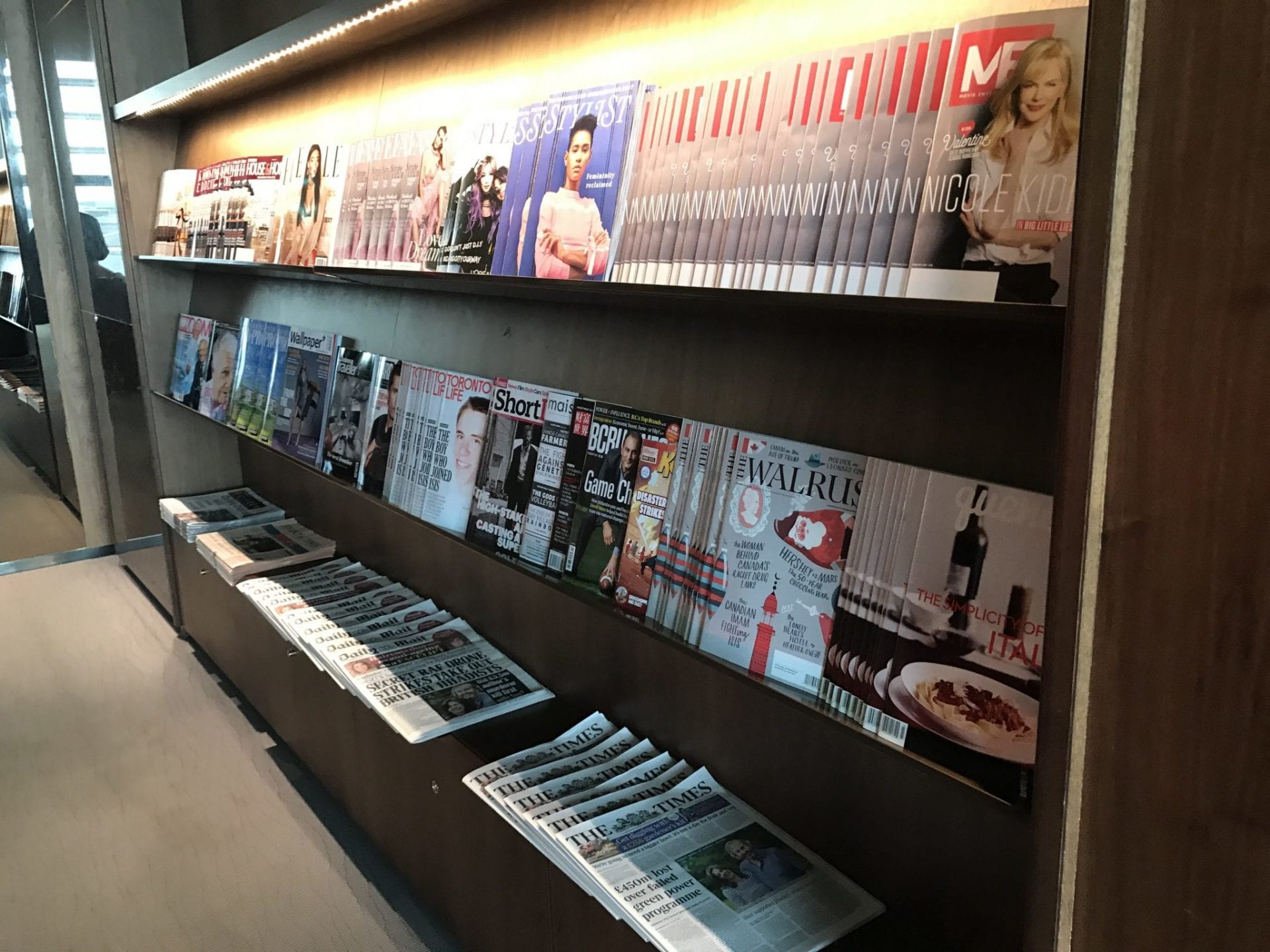 Wie es in den meisten internationalen Lounges, gibt es auch in der Air Canada Lounge Duschen, die Ihr nach einer kurzen Nachfrage beim Lounge-Personal nutzen dürft. Außerdem gibt es eine recht große Auswahl an Magazinen und Zeitschriften.