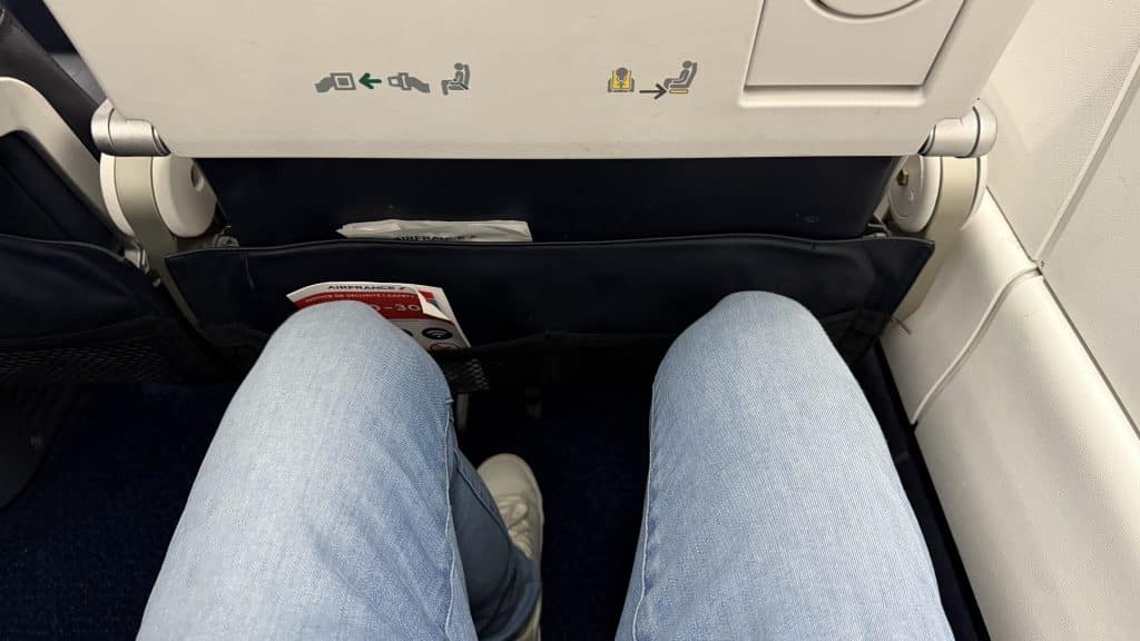 Bei Air France gibt es zwar leicht abweichende Konfigurationen, allerdings ist die Beinfreiheit gemeinhin in beiden Reiseklassen gleich, sodass es hier keine relevanten Unterschiede gibt. Zuletzt sei noch erwähnt, dass es leicht abweichende Sitzkonfigurationen in den neuen Airbus A220 gibt, die von Air France ebenfalls in die Flotte aufgenommen wurden. Mit einer solchen Maschine war ich bei meinem Flug im Jahr 2025 unterwegs und empfand die Kabine und auch die Sitze als deutlich moderner.
