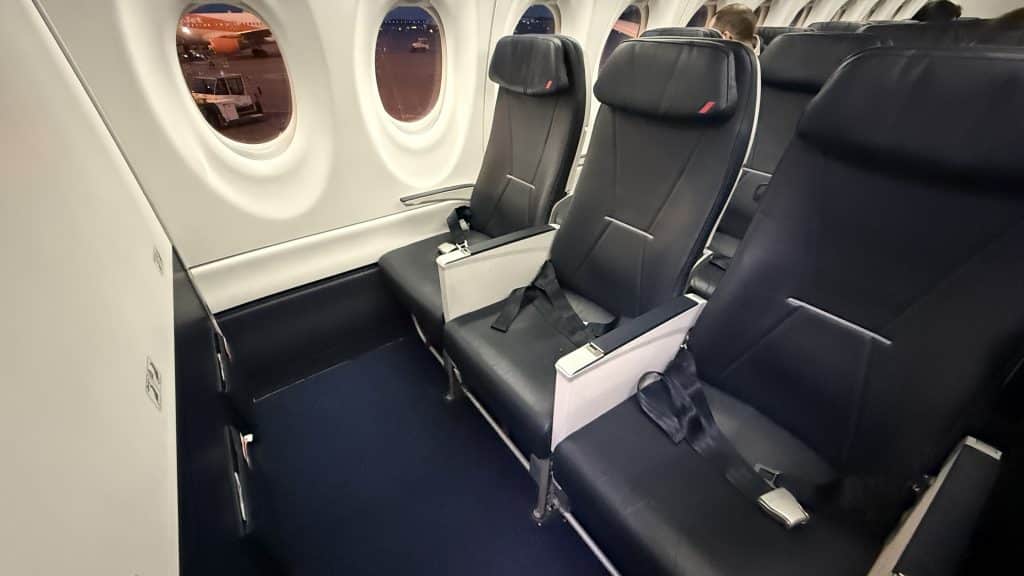 Positiv ist bei diesen Maschinen sicherlich allerdings auch, dass es durch die 2-3 Konfiguration die Option gibt, dank des freien Nebensitzes eine ganze Reihe für sich zu haben. Wer dagegen mit Begleitung fliegt, kann auf der 3er-Seite gemeinsam mit einem freien dritten Sitz Platz nehmen.