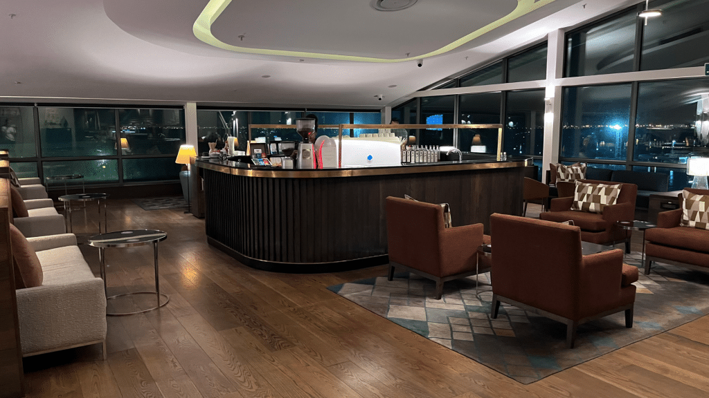 Ich war überrascht, wie weitläufig die zweite Etage ist und würde auf jeden Fall empfehlen, hierher zu gehen, da es deutlich ruhiger ist als auf der Fläche des Eingangs. Das Buffet und die Barista Kaffeebar findet sich oben genauso wieder. Es sei vielleicht noch der Hinweis gegeben, dass man mit einem Business Class Ticket ausschließlich Zutritt zu dieser Lounge hat und einem selbst mit einem Star Alliance Gold Status der Zugang zur Star Alliance Lounge verwehrt wird. Ob dies mit einem Ticket über oder als Statusgast von United genauso wäre, kann ich nicht belegen.