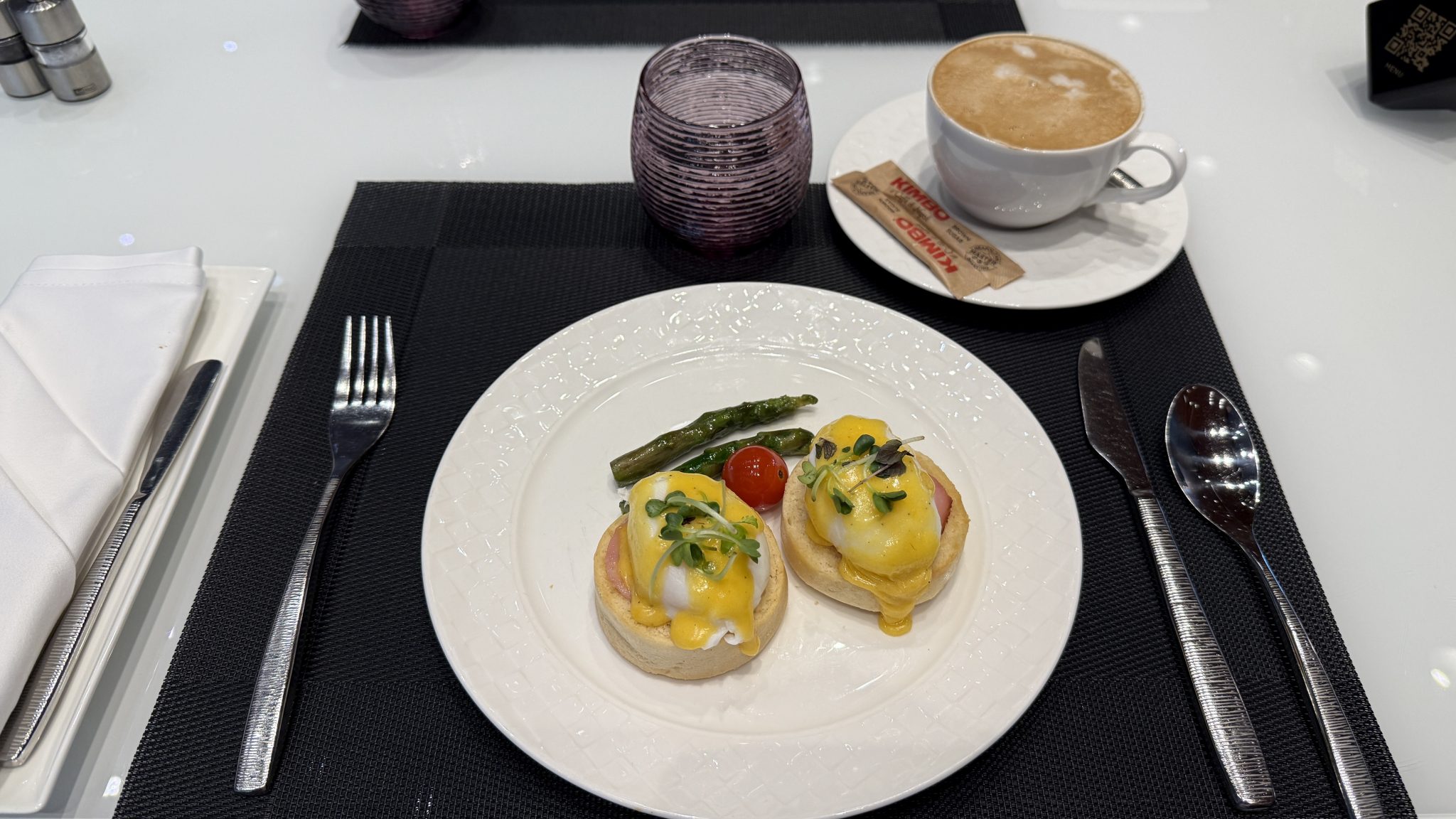 Moritz entschied sich allerdings in dieser Hinsicht primär für das à la carte Menü und konnte so Eggs Benedict probieren, die ihn einigermaßen überzeugen konnten. Lecker waren auch die Pfannkuchen sowie speziell der Cappuccino vom Barista.