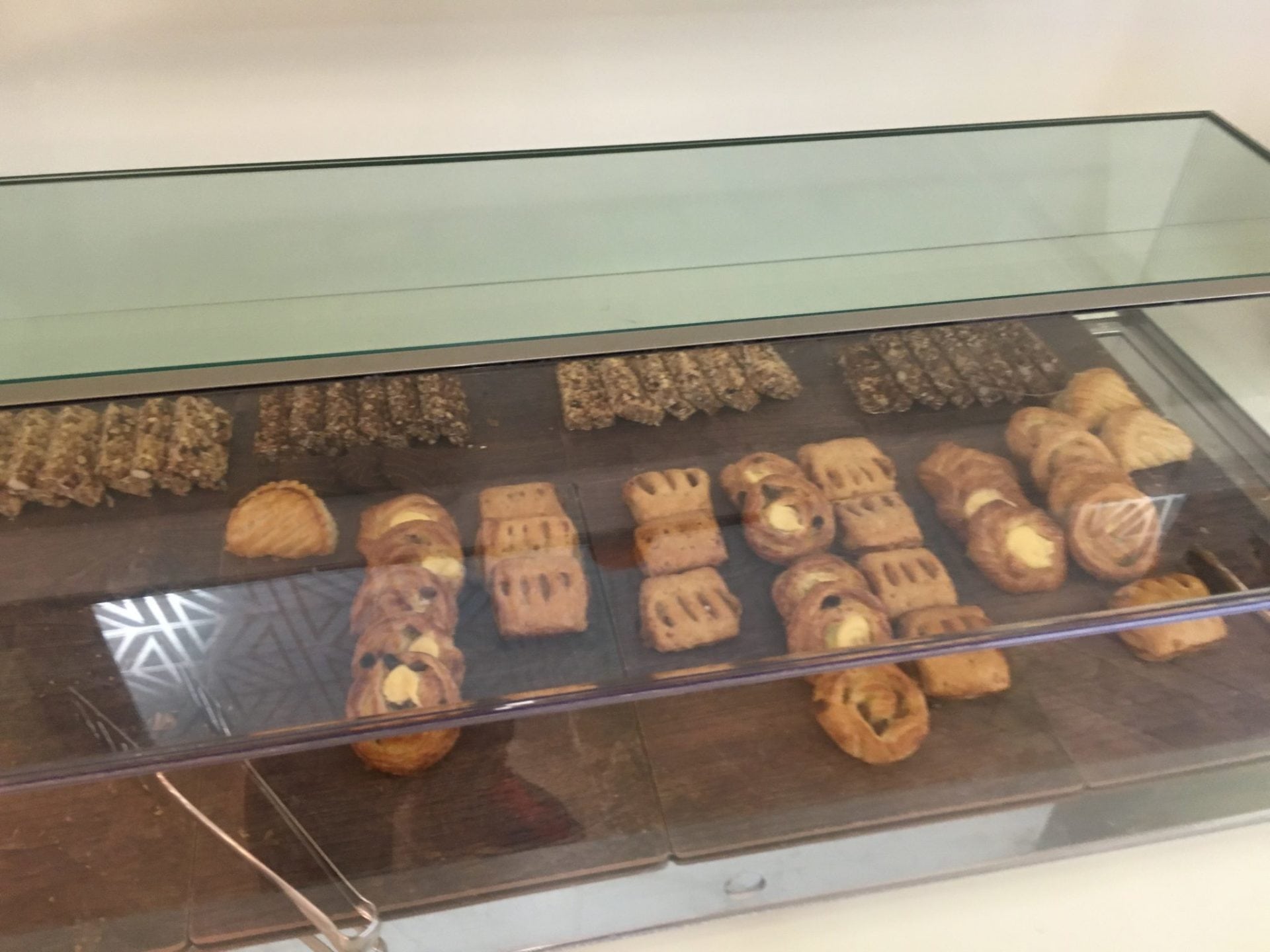 Das Angebot an Essen in der Alitalia Lounge Mailand Linate ist sehr überschaubar. Es gibt ein kleines Buffet mit Sandwiches und Kuchen. Dieses befindet sich direkt neben der bedienten Bar.