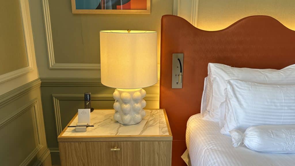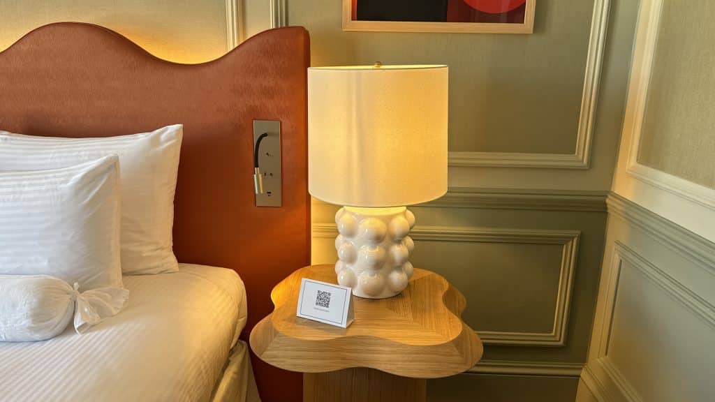 Auf beiden Seiten des Bettes ist jeweils ein großer Nachttisch zu finden, der neben Lichtschaltern auch Lademöglichkeiten für Geräte mit USB-A und USB-C aufweist. Eine schöne Nachttischlampe gibt es ebenfalls.